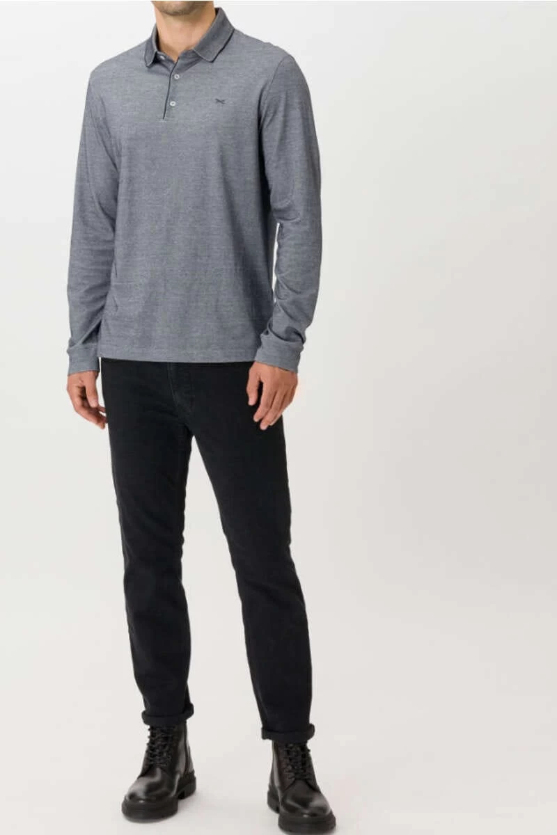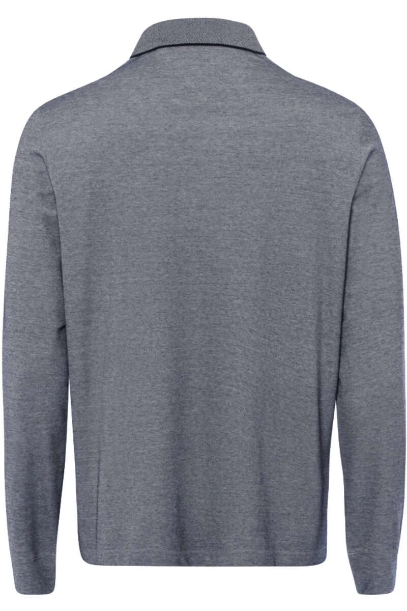 Brax Modern Fit Longsleeve Poloshirt Nachtblau, Einfarbig