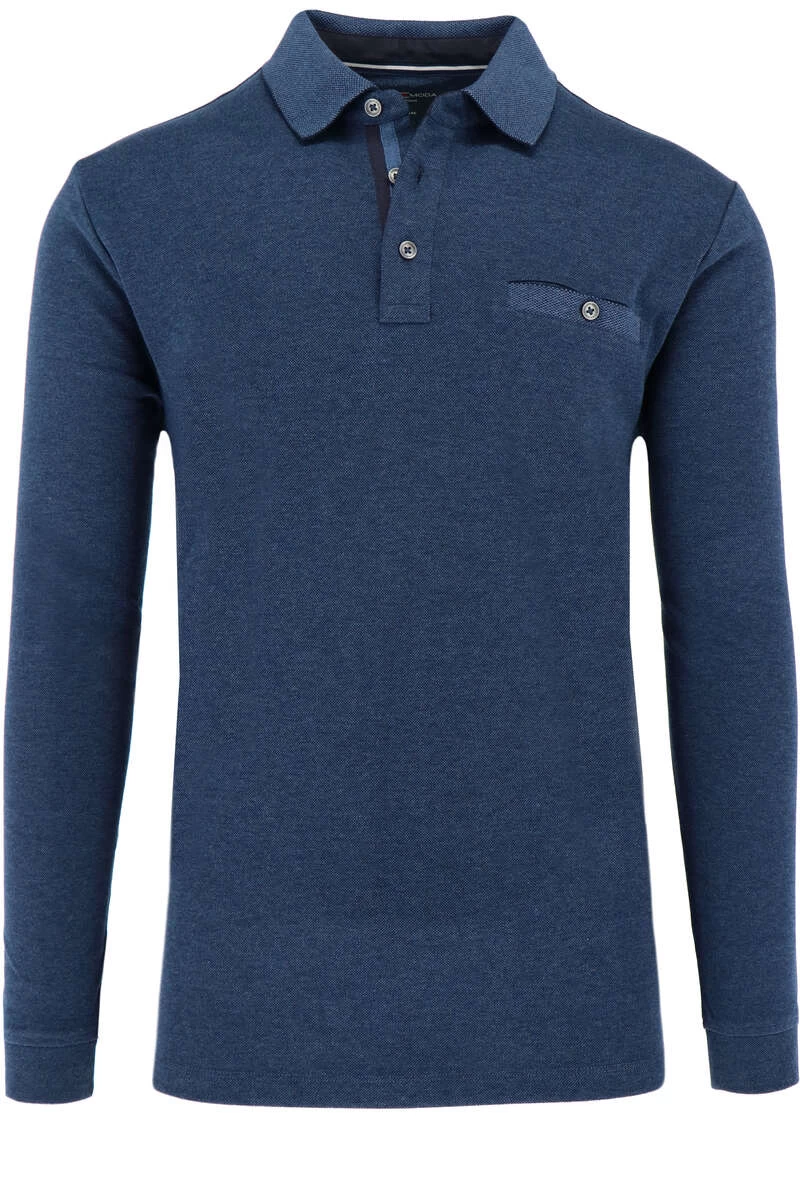 Casa Moda Longsleeve Poloshirt Blau, Gemustert