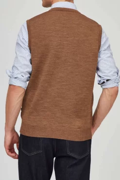 MAERZ Superwash Classic Fit Herren Pullunder V-Ausschnitt Braun