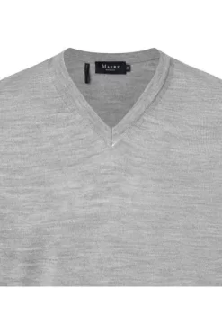 MAERZ Superwash Classic Fit Herren PulloverPullunder V-Ausschnitt Bleigrauhellgrau