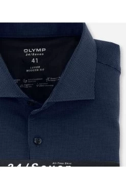 OLYMP Luxor Modern Fit Longsleeve Poloshirt Marine, Gemustert