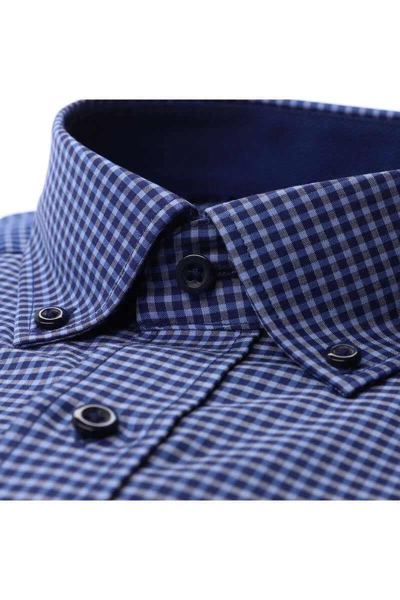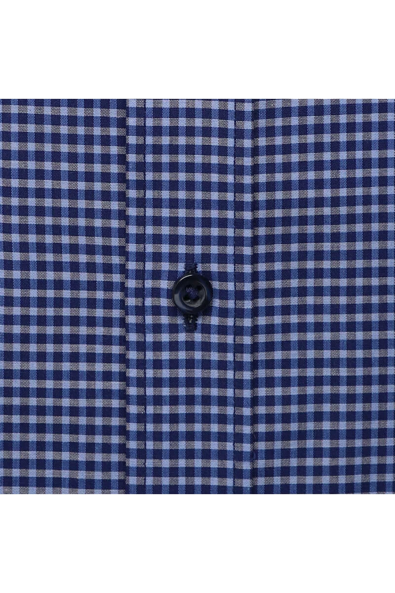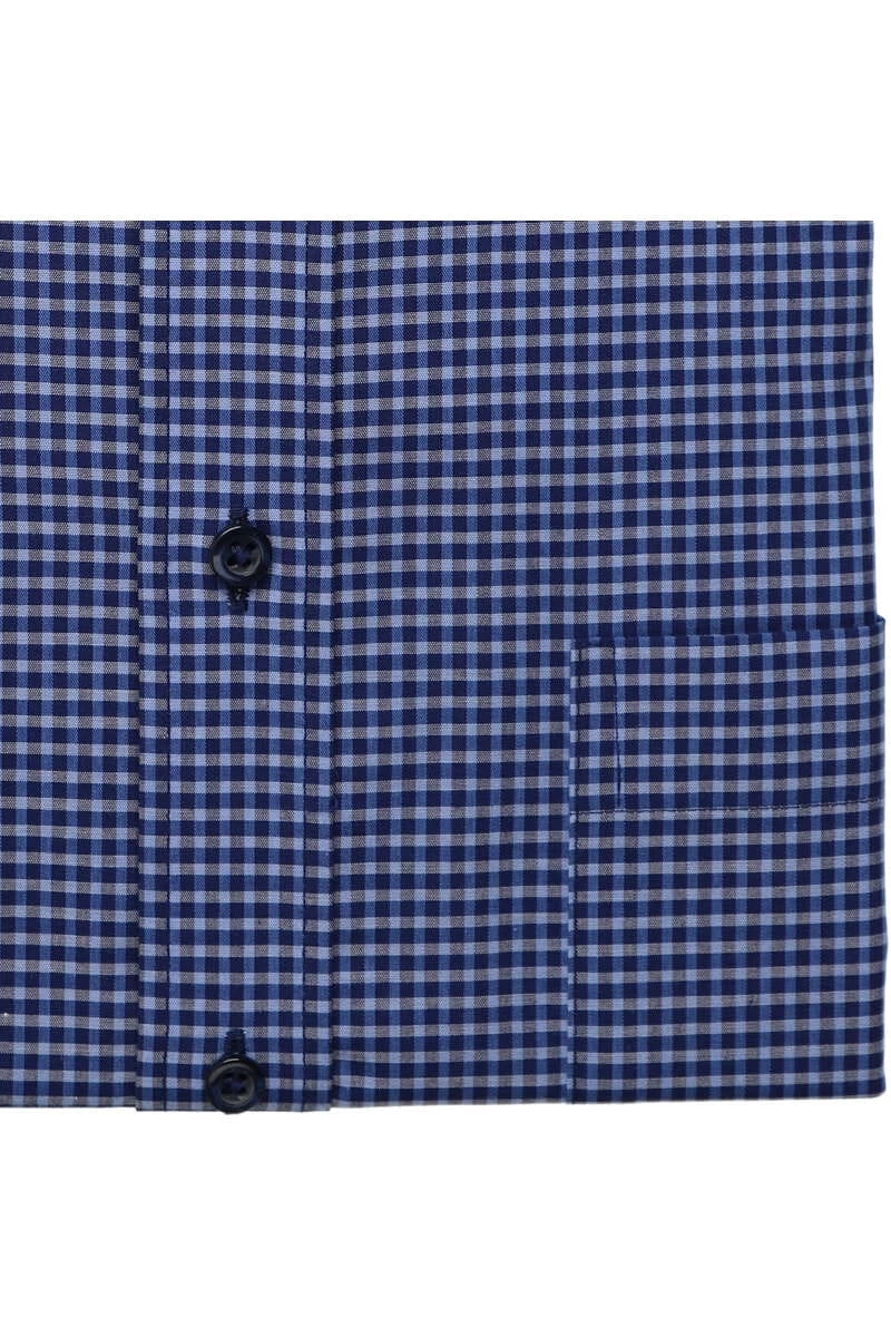 Ein ETERNA Modern Fit Hemd mit einem Button-Downkragen, in der Farbe hellblau/marine – Kariert. ETERNA Modern Fit Hemden sind stets Bügelfrei und knitterfrei und dadurch leicht zu pflegen. Zusätzlicher Tragekomfort ergibt sich durch die selbstglättende Funktion der Hemden.