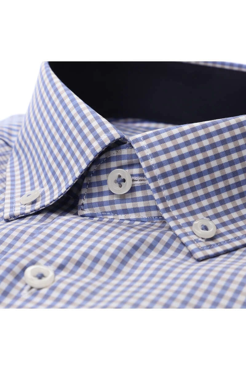 Ein ETERNA Modern Fit Hemd mit einem Button-Downkragen, in der Farbe hellblau/rose – Kariert. ETERNA Modern Fit Hemden sind stets Bügelfrei und knitterfrei und dadurch leicht zu pflegen. Zusätzlicher Tragekomfort ergibt sich durch die selbstglättende Funktion der Hemden.