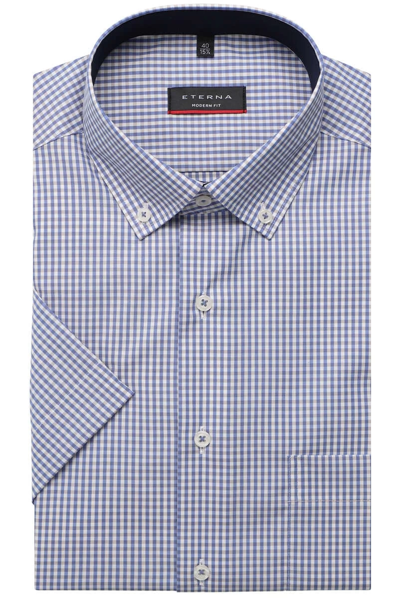 Ein Eterna Hemd mit Kurzarm aus einem Popeline – Stoff. Das Ausgangsmaterial aus 100% Baumwolle gibt dem Hemd zudem eine angenehme Temperatur- und Feuchtigkeitsregulierende Wirkung.