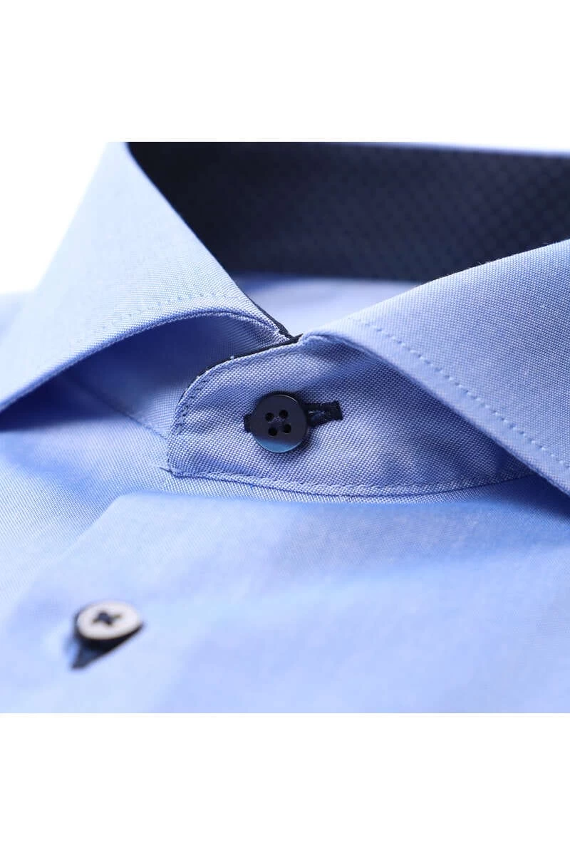 Ein ETERNA Slim Fit Hemd mit einem Haifischkragen, in der Farbe mittelblau – Einfarbig. Slim Fit bedeutet hoher Tragekomfort, ein Hemd der bügelleichten Kategorie. Kompromisslose Qualität. Hemden von ETERNA sind nachhaltig produziert und nach dem höchsten Öko-Tex Standard 100+ zertifiziert. Slim Fit ist die figurbetonte Passform und schließt die Modellpalette zu Modern Fit und Comfort Fit.