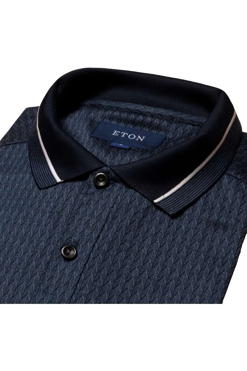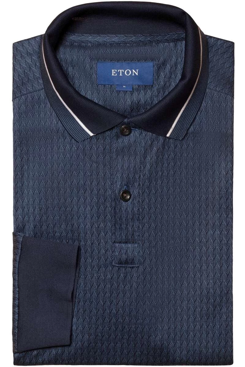 ETON Slim Fit Longsleeve Poloshirt Navy, Strukturiert