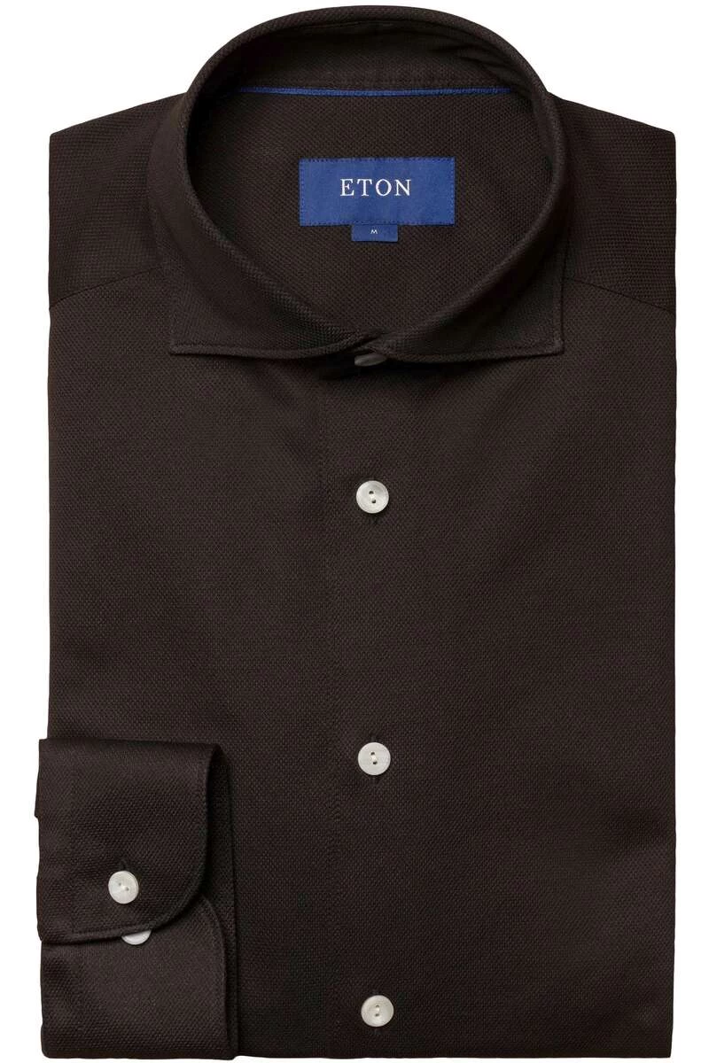 ETON Slim Fit Longsleeve Poloshirt Schwarz, Einfarbig