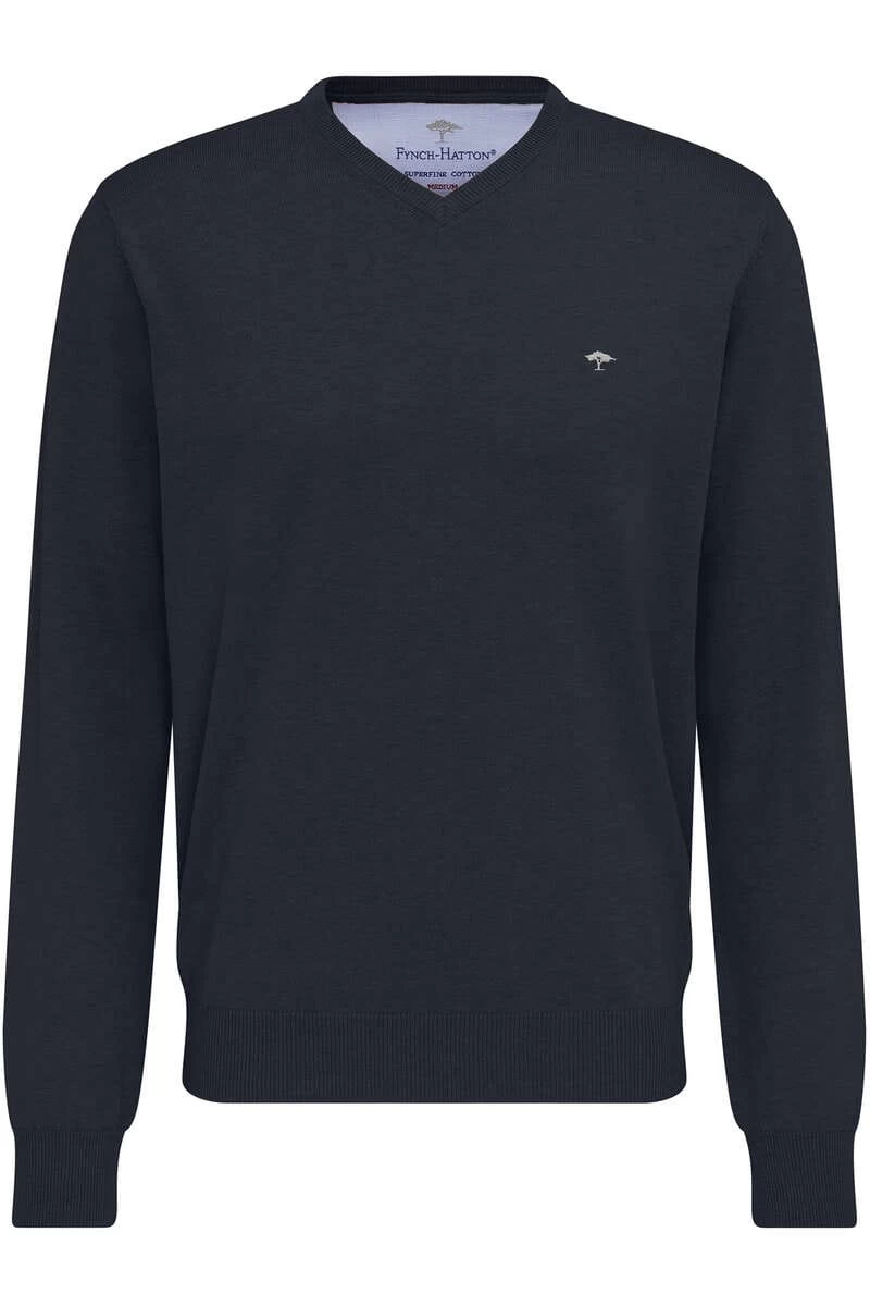 Fynch-Hatton Casual Fit Herren Pullover V-Ausschnitt Navy