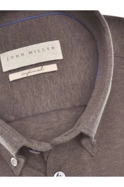 John Miller Tailored Fit Longsleeve Poloshirt Braun, Einfarbig