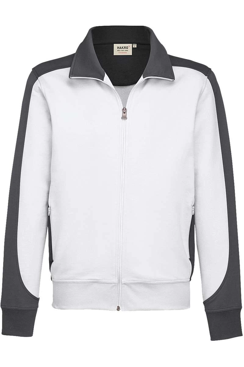 HAKRO 477 Comfort Fit Sweatjacke Zip Weiss/anthrazit