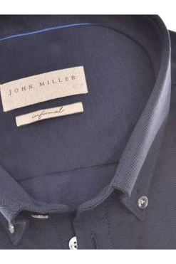 John Miller Tailored Fit Longsleeve Poloshirt Navy, Einfarbig