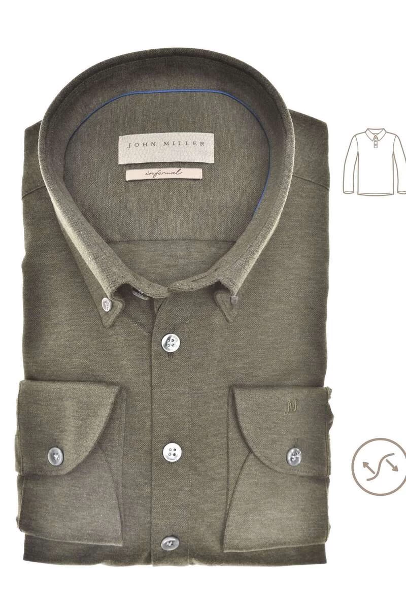 John Miller Slim Fit Longsleeve Poloshirt Grün, Einfarbig