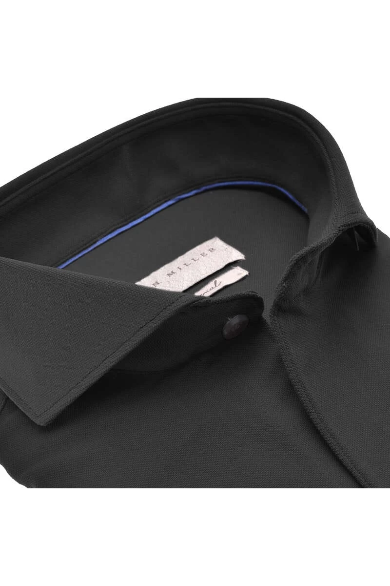 John Miller Slim Fit Longsleeve Poloshirt Schwarz, Einfarbig