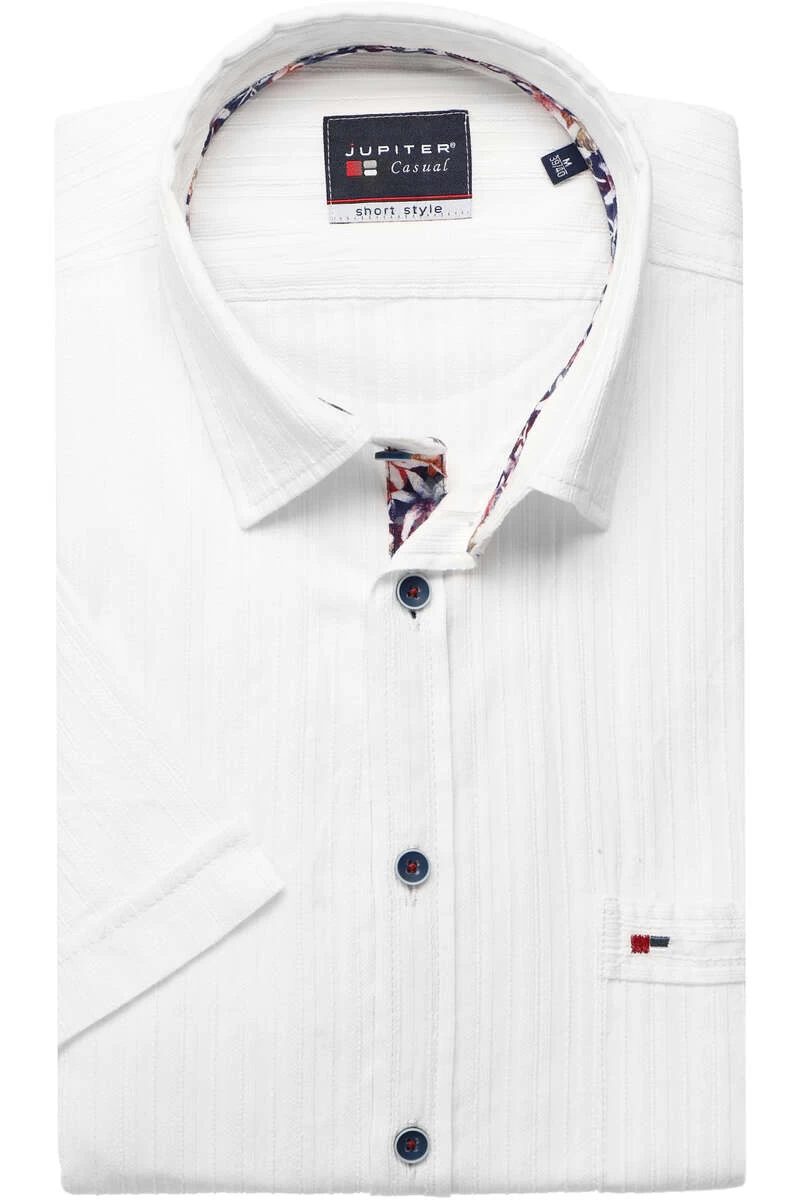 Dieses Jupiter Modern Fit Hemd in der Farbe weiss, Einfarbig hat den Armtyp Kurzarm. Das Hemd ist Pflegeleicht und aus hochwertigem Seersucker Stoff aus 100% Baumwolle genäht.
