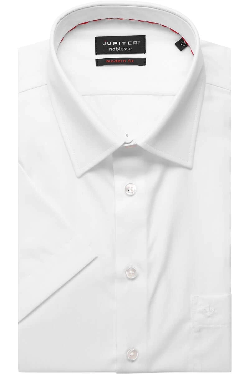 Dieses Jupiter Modern Fit Hemd in der Farbe weiss, Einfarbig hat den Armtyp Kurzarm. Das Hemd ist Bügelfrei und aus hochwertigem Popeline Stoff aus 100% Baumwolle genäht.