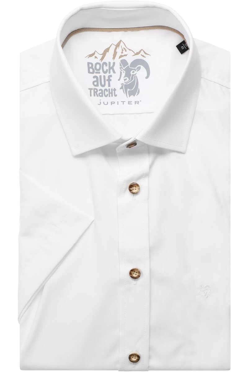Dieses Jupiter Slim Fit Trachtenhemd in der Farbe weiss, Einfarbig hat den Armtyp Kurzarm. Das Hemd ist Pflegeleicht und aus hochwertigem Popeline Stoff aus 100% Baumwolle genäht.