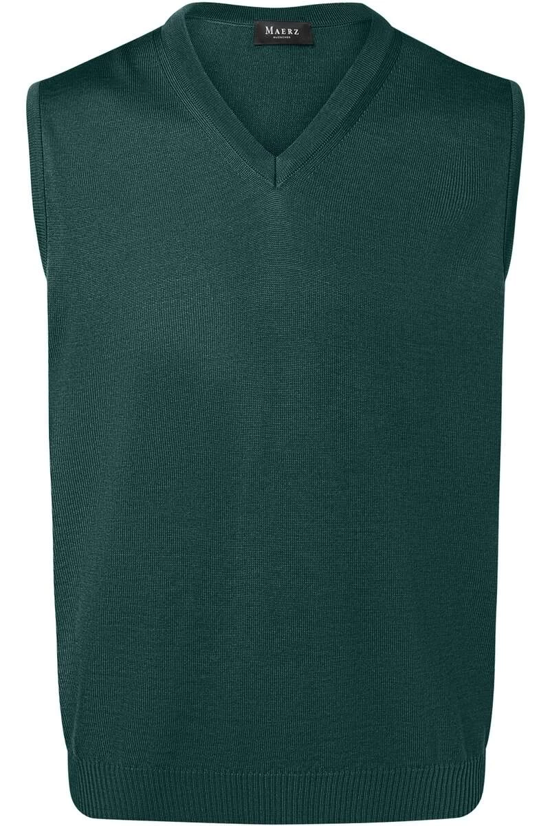 MAERZ Superwash Classic Fit Herren Pullunder V-Ausschnitt Dunkelgrün
