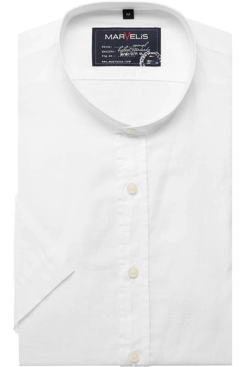 Das Marvelis Modern Fit Hemd (früher Slim Line), Pflegeleicht mit einem Steh Kragen, in der Farbe weiss – Einfarbig. Marvelis Modern Fit Hemden sind leicht tailliert und eigenen sich hervorragend als Businesshemd, nicht zuletzt da die Hemden knitter- und bügelfrei sind. Garantierte Marvelis Qualität geprüft nach Öko-Tex Standard 100 bürgt für einen hervorragenden Tragekomfort.