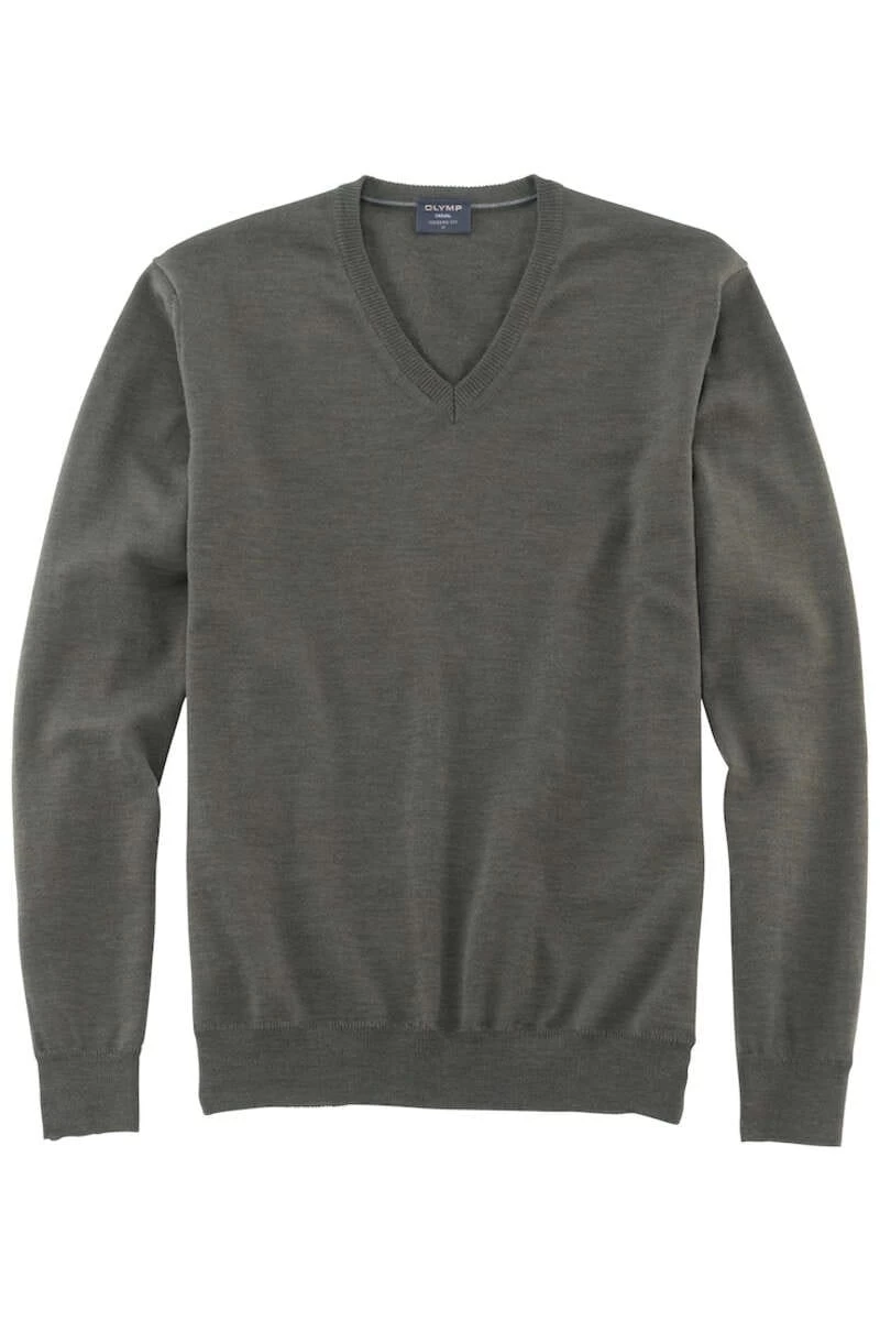 OLYMP Casual Modern Fit Herren Pullover V-Ausschnitt Oliv