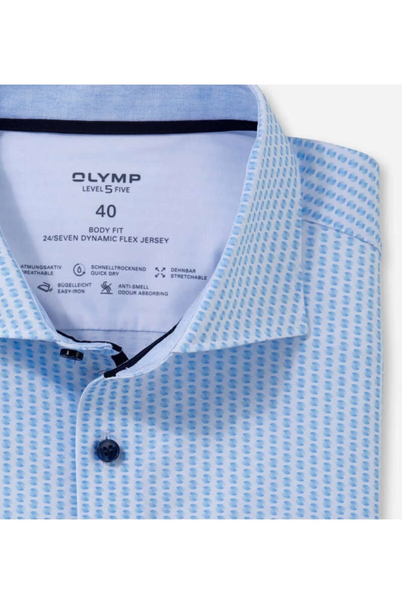 “OLYMP Level Five 24/Seven Dynamic Flex Body Fit Jerseyhemd bleu/weiss, Gemustert”