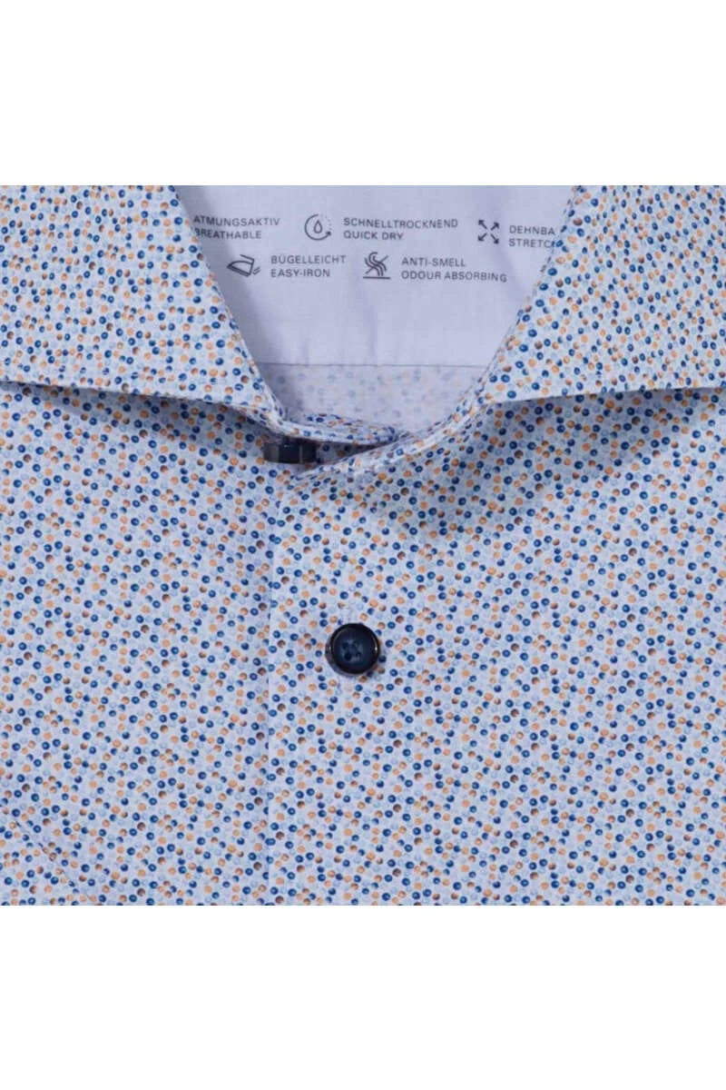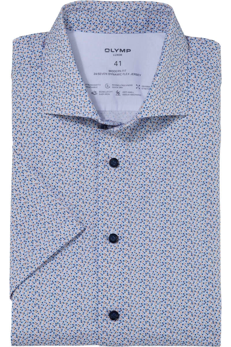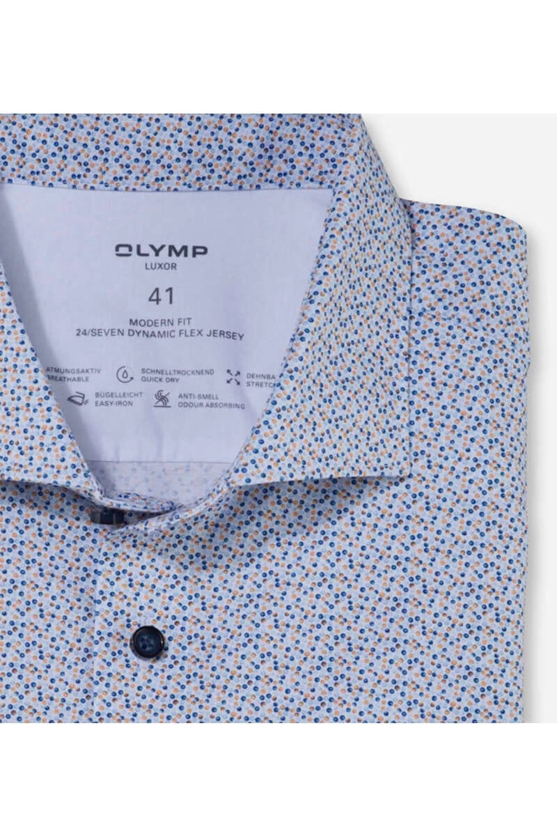“OLYMP Luxor 24/Seven Dynamic Flex Modern Fit Jerseyhemd blau/orange, Gemustert”