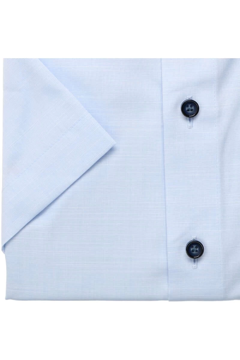 Das Hemd mit Kurzarm ist aus einem Popeline – Stoff gefertigt. Der Stoff hat eine atmungsaktiv Eigenschaft. Er absorbiert Feuchtigkeit, was die gefühlte Temperatur des Trägers am am Körper reguliert.