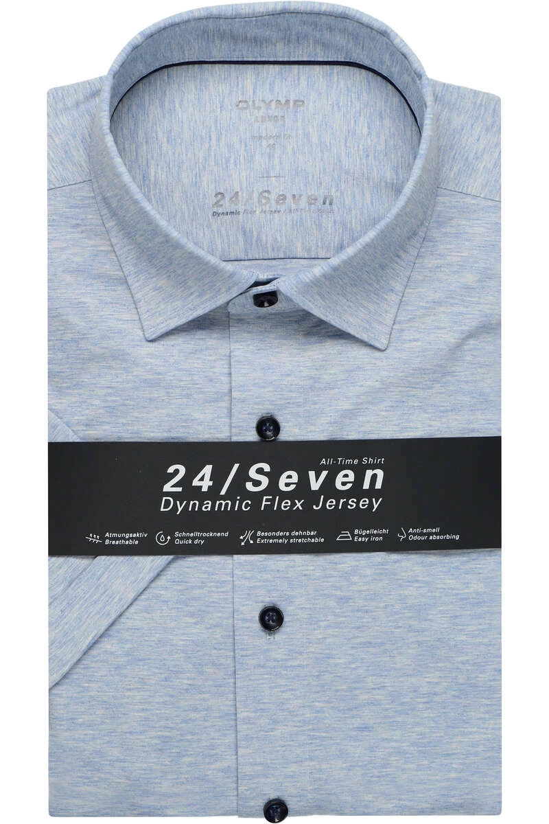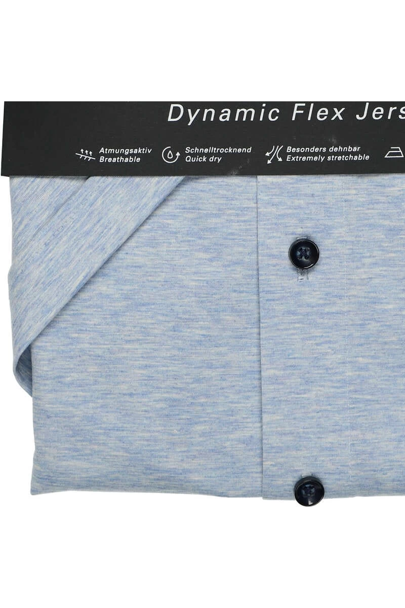 Ein OLYMP Hemd in Kurzarm aus einem Jersey, das zudem atmungsaktiv ist, Feuchtigkeit absorbiert und die gefühlte Temperatur am Körper ausgleicht.