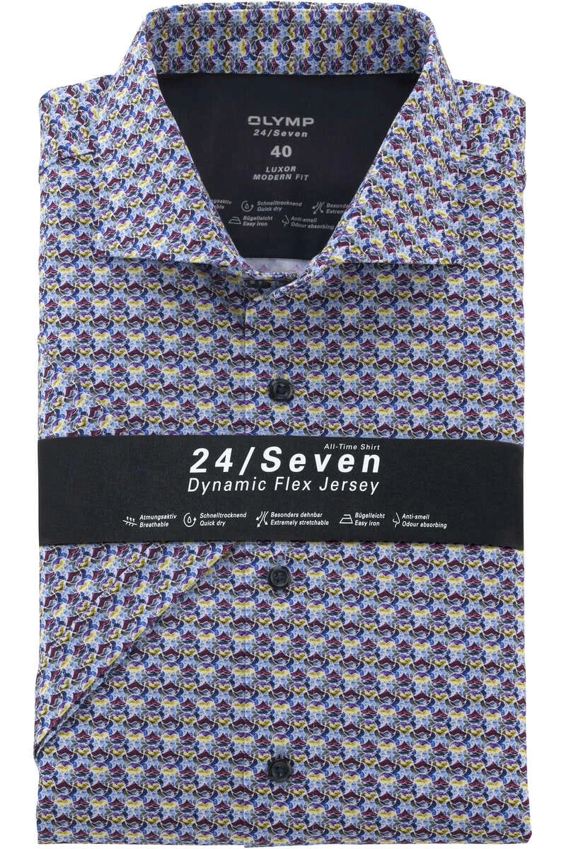 Ein OLYMP Hemd in Kurzarm aus einem Jersey, das zudem atmungsaktiv ist, Feuchtigkeit absorbiert und die gefühlte Temperatur am Körper ausgleicht.