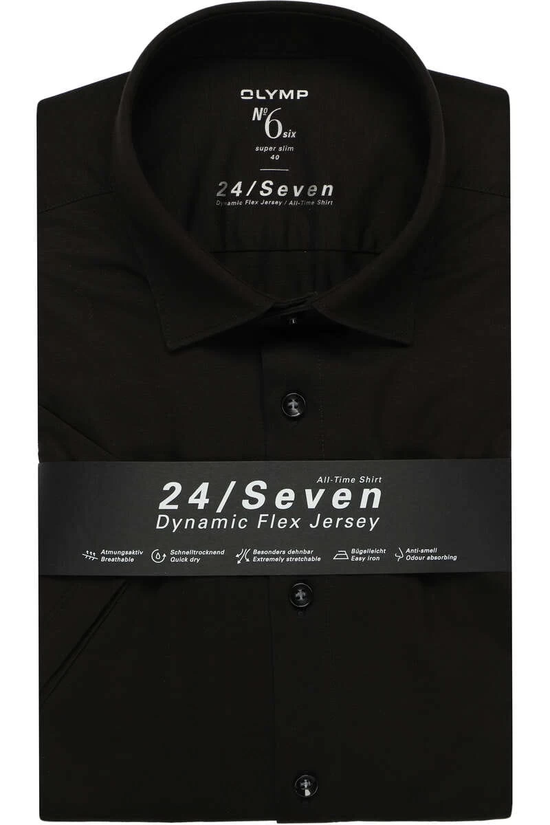 “OLYMP No. Six Super Slim Jerseyhemd schwarz, Faux-uni”