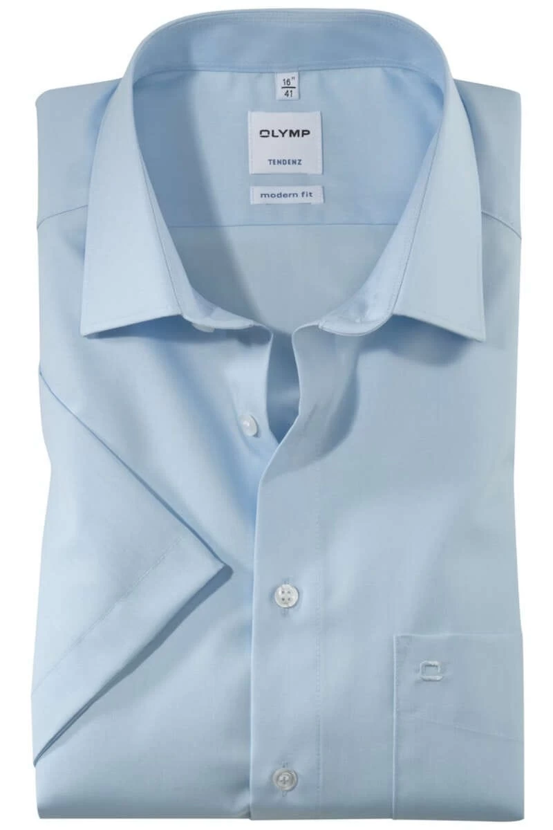 Ein OLYMP Tendenz Hemd Modern fit in Kurzarm aus einem Popeline – Stoff. Es ist nicht nur atmungsaktiv und absorbiert Feuchtigkeit, sondern gleicht auch die gefühlte Temperatur am Körper aus.