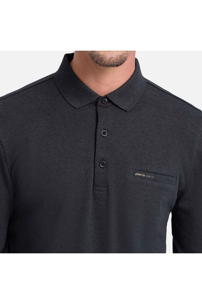Pierre Cardin Modern Fit Longsleeve Poloshirt Anthrazit, Einfarbig