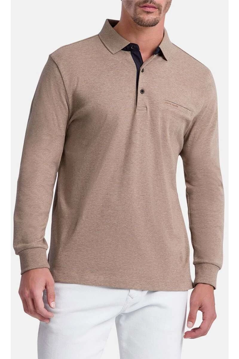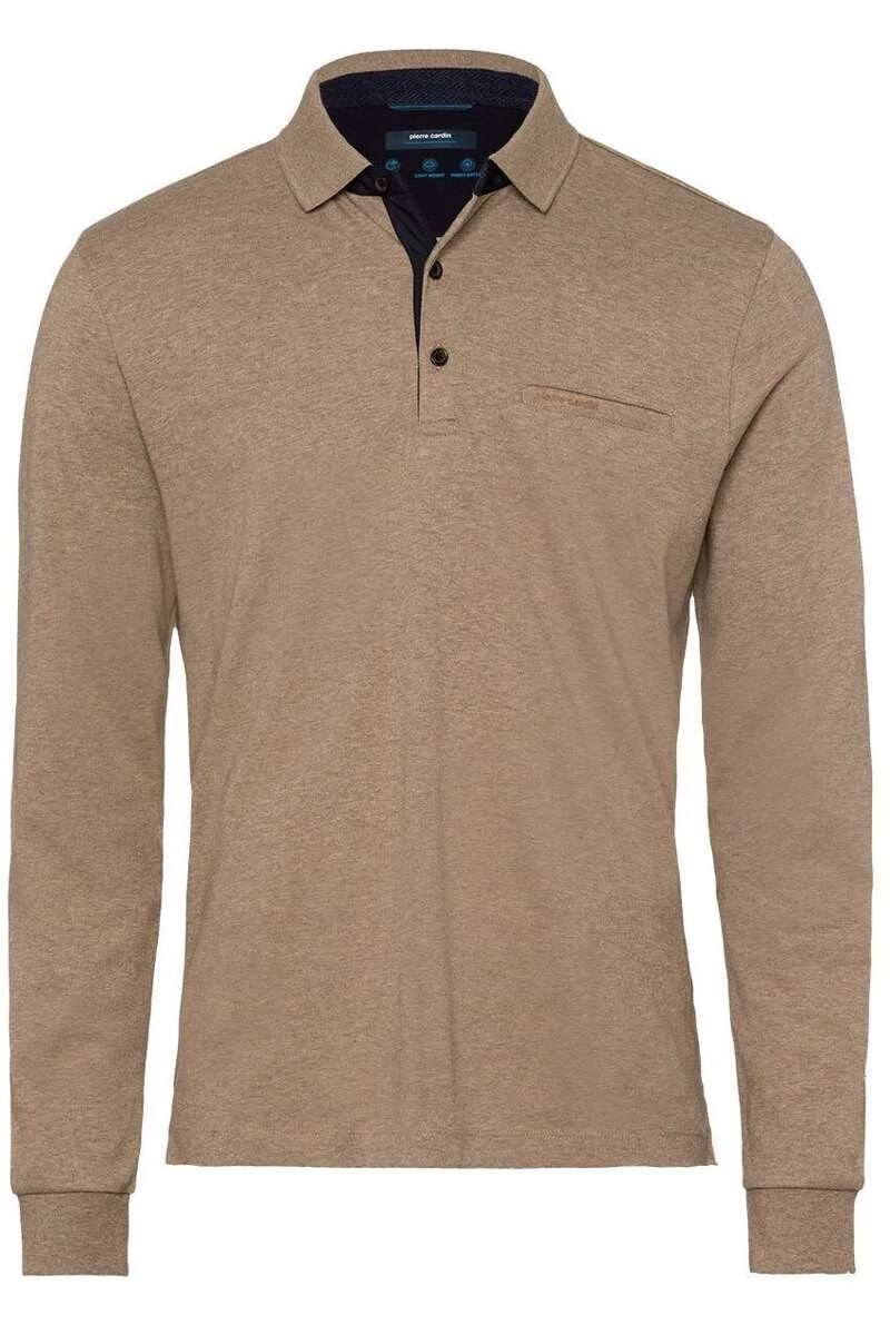 Pierre Cardin Modern Fit Longsleeve Poloshirt Beige, Einfarbig