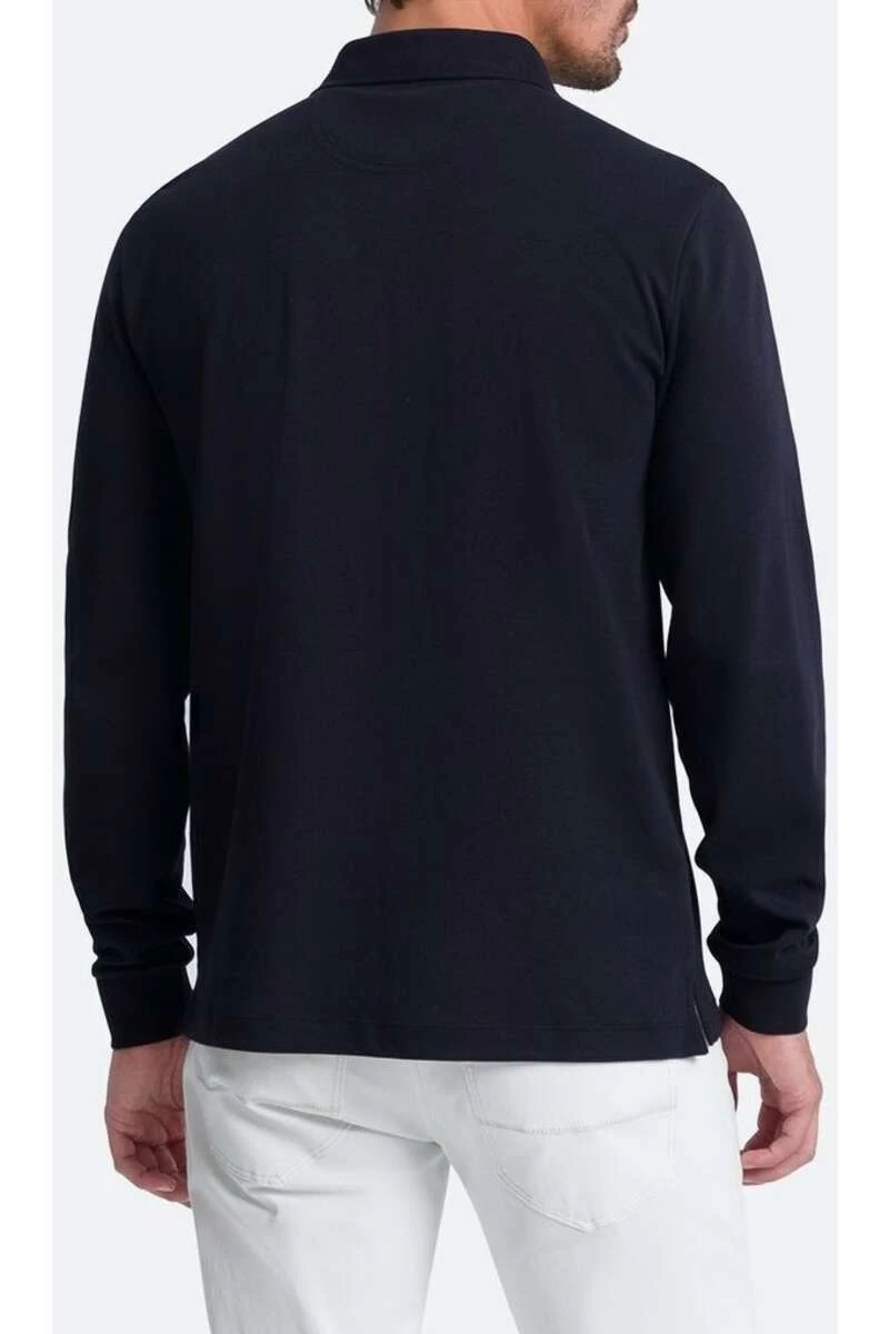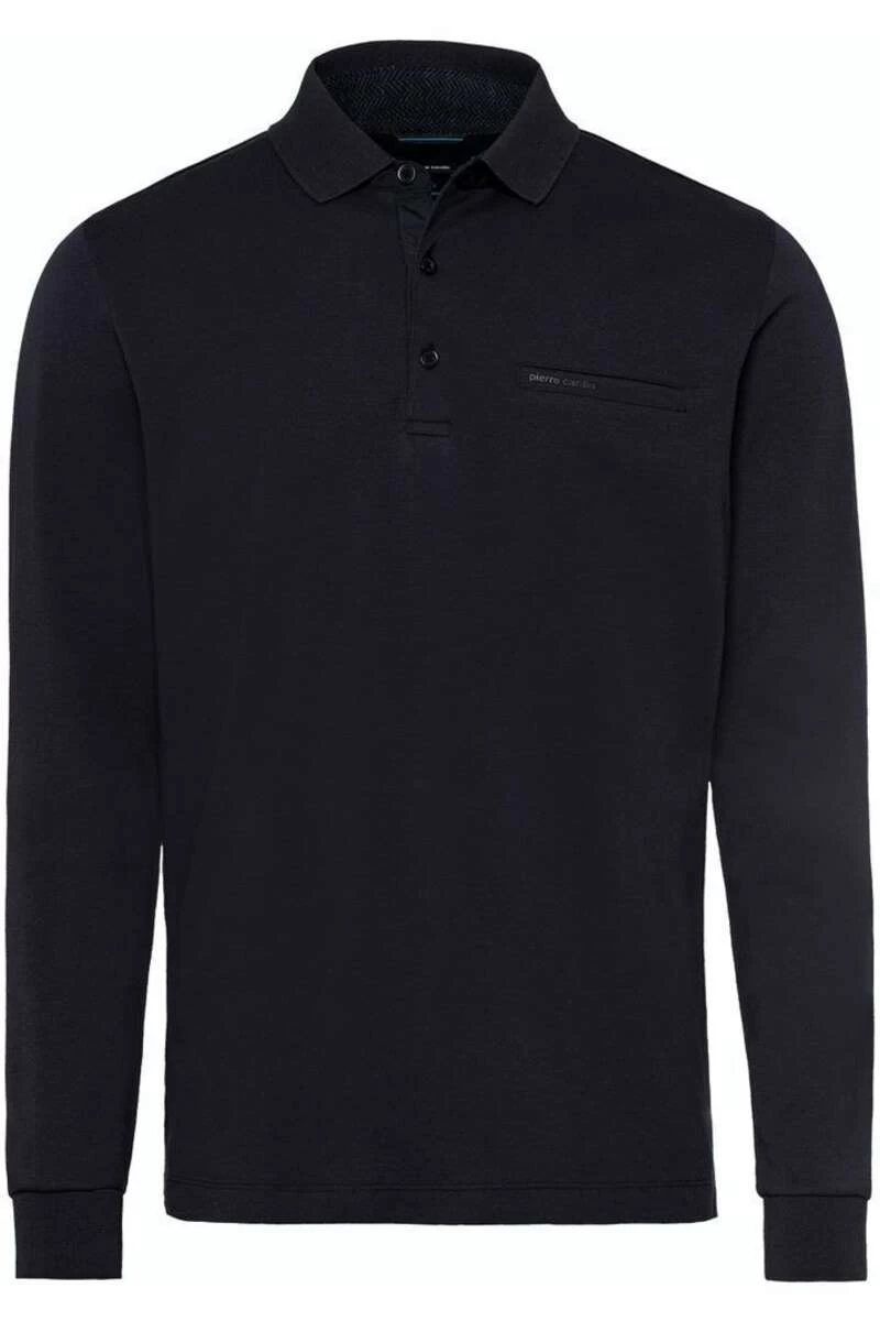 Pierre Cardin Modern Fit Longsleeve Poloshirt Blau, Einfarbig