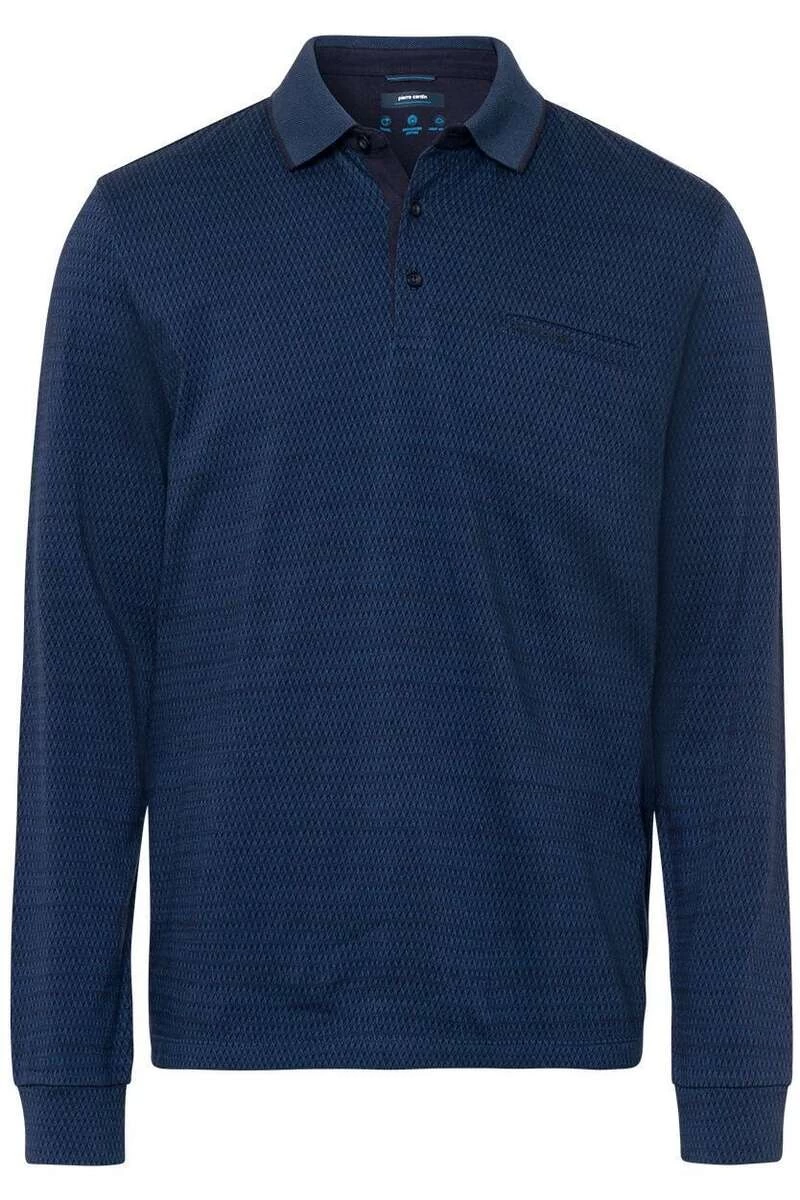 Pierre Cardin Modern Fit Longsleeve Poloshirt Schwarz, Gemustert