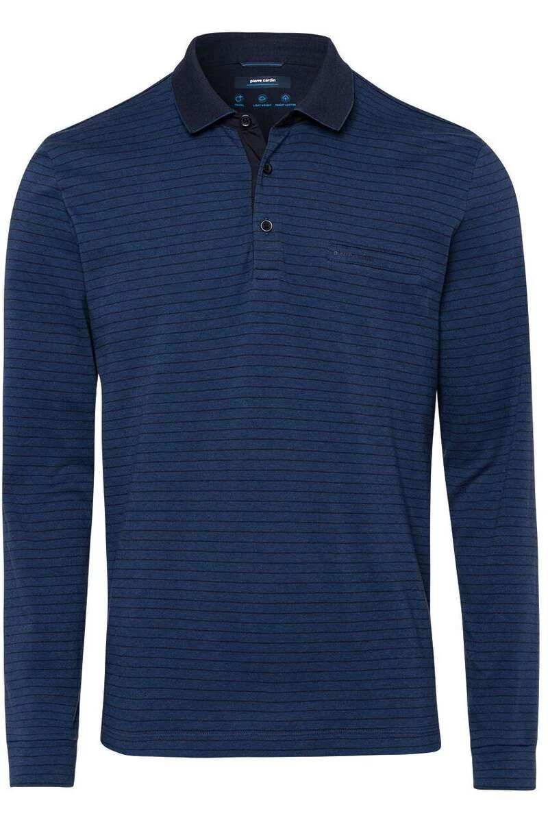 Pierre Cardin Modern Fit Longsleeve Poloshirt Schwarz, Gestreift