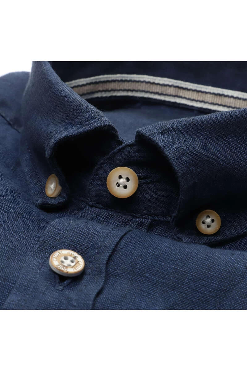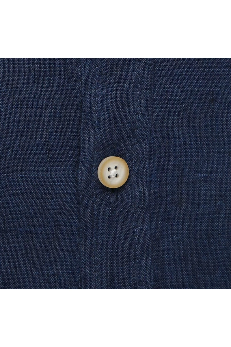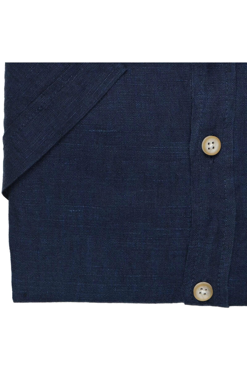 Dieses Pure Slim Fit Hemd hat die Farbe marine – Einfarbig und einen Button-Down-Kragen. Die Armlänge ist Kurzarm und das Hemd ist aus einem Leinen – Gewebe aus 100% Leinen.