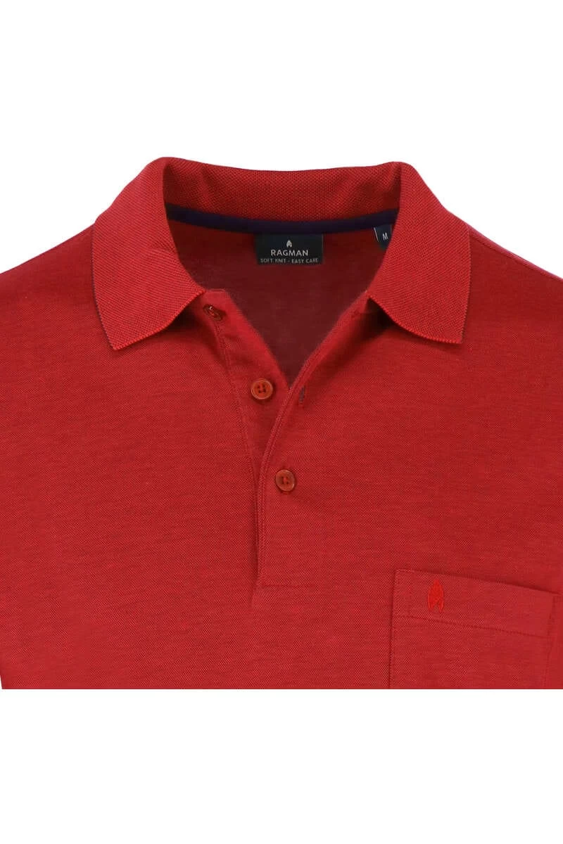 RAGMAN Regular Fit Longsleeve Poloshirt Erdbeere, Einfarbig
