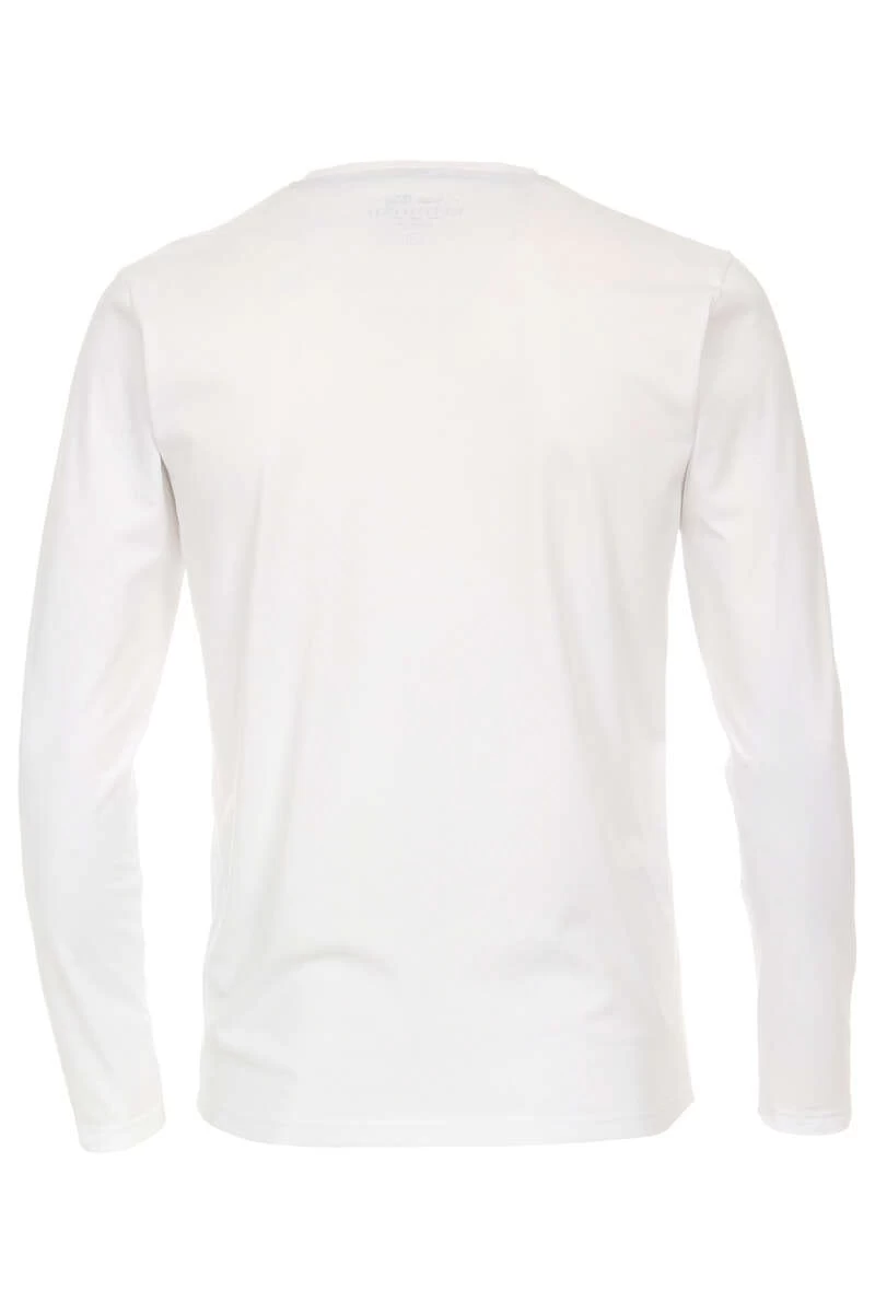 Hochwertiger Redmond Henleykragen Longsleeve in weiss in klassischer Passform aus 100% Baumwolle.