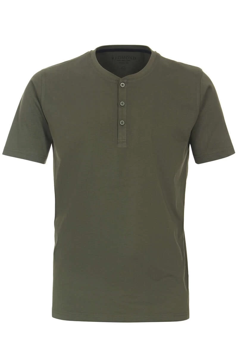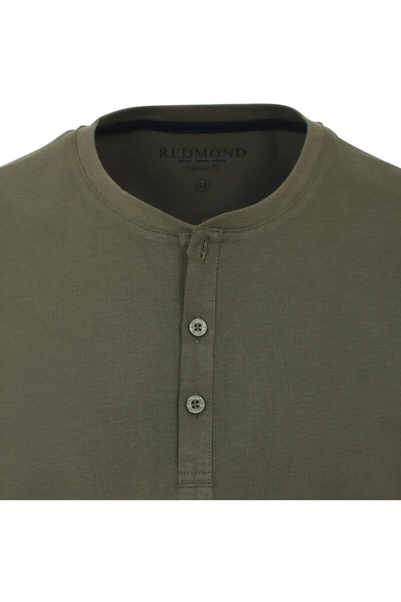 Hochwertiger Redmond Henleykragen T-Shirt in oliv in klassischer Passform aus 100% Baumwolle.