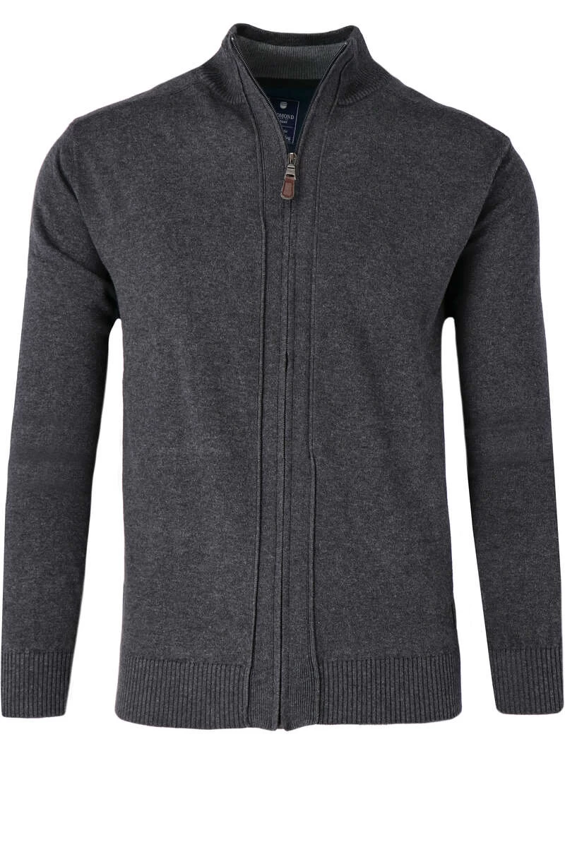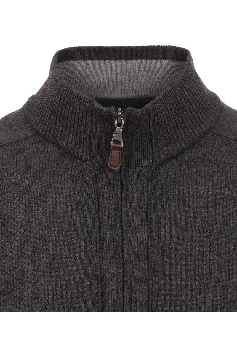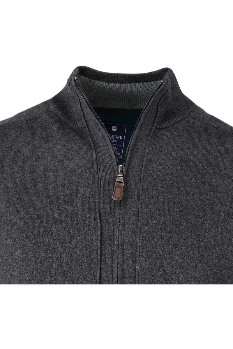Hochwertiger Redmond Zip Strickjacke in anthrazit in klassischer Passform aus 100% Baumwolle.