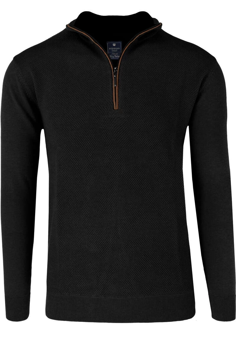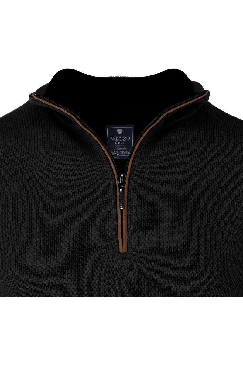 Hochwertiger Redmond Zip Troyer in schwarz in klassischer Passform aus 100% Baumwolle.