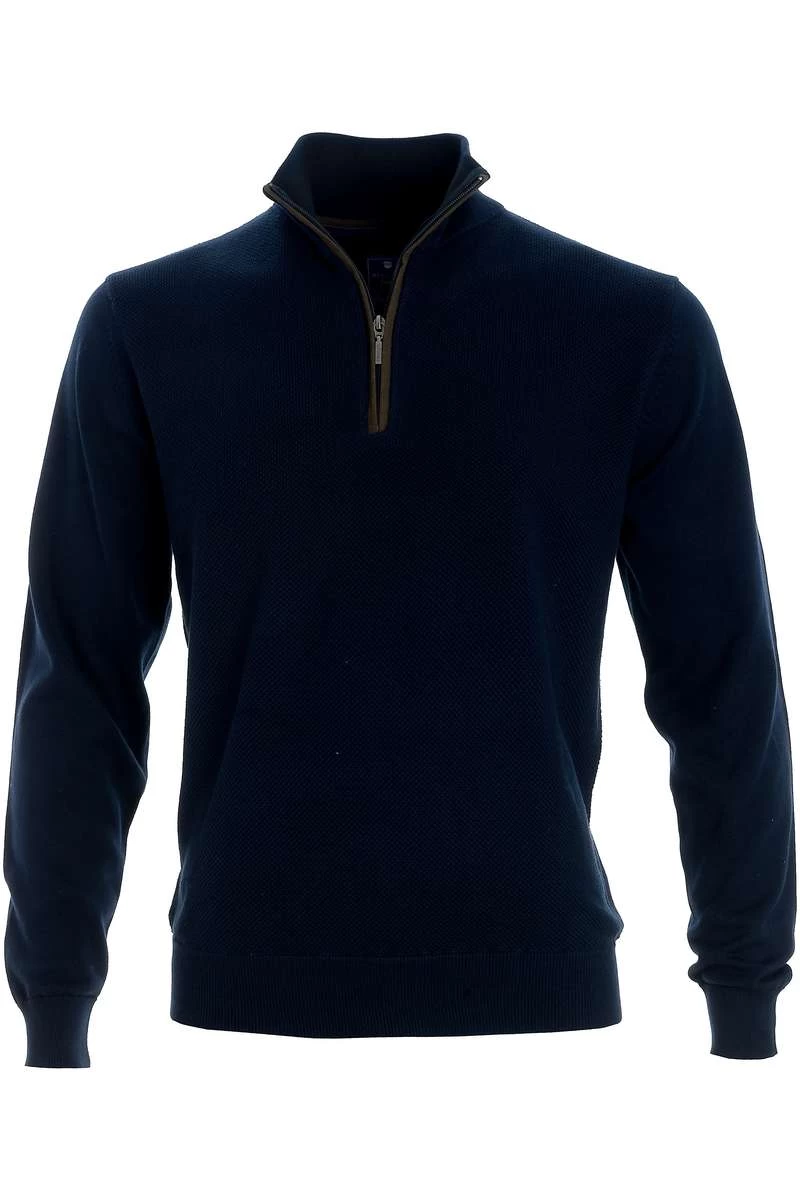 Hochwertiger Redmond {#knit_type#} Troyer in nachtblau in klassischer Passform aus 100% Baumwolle.
