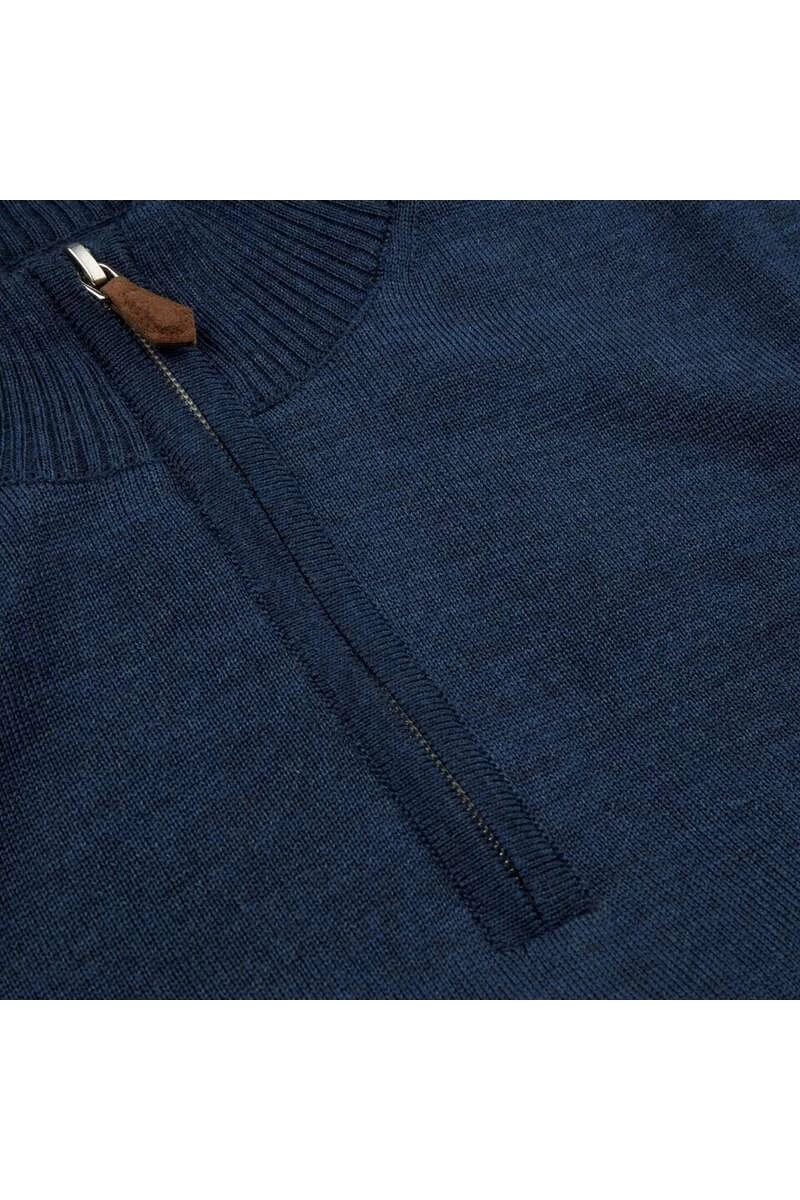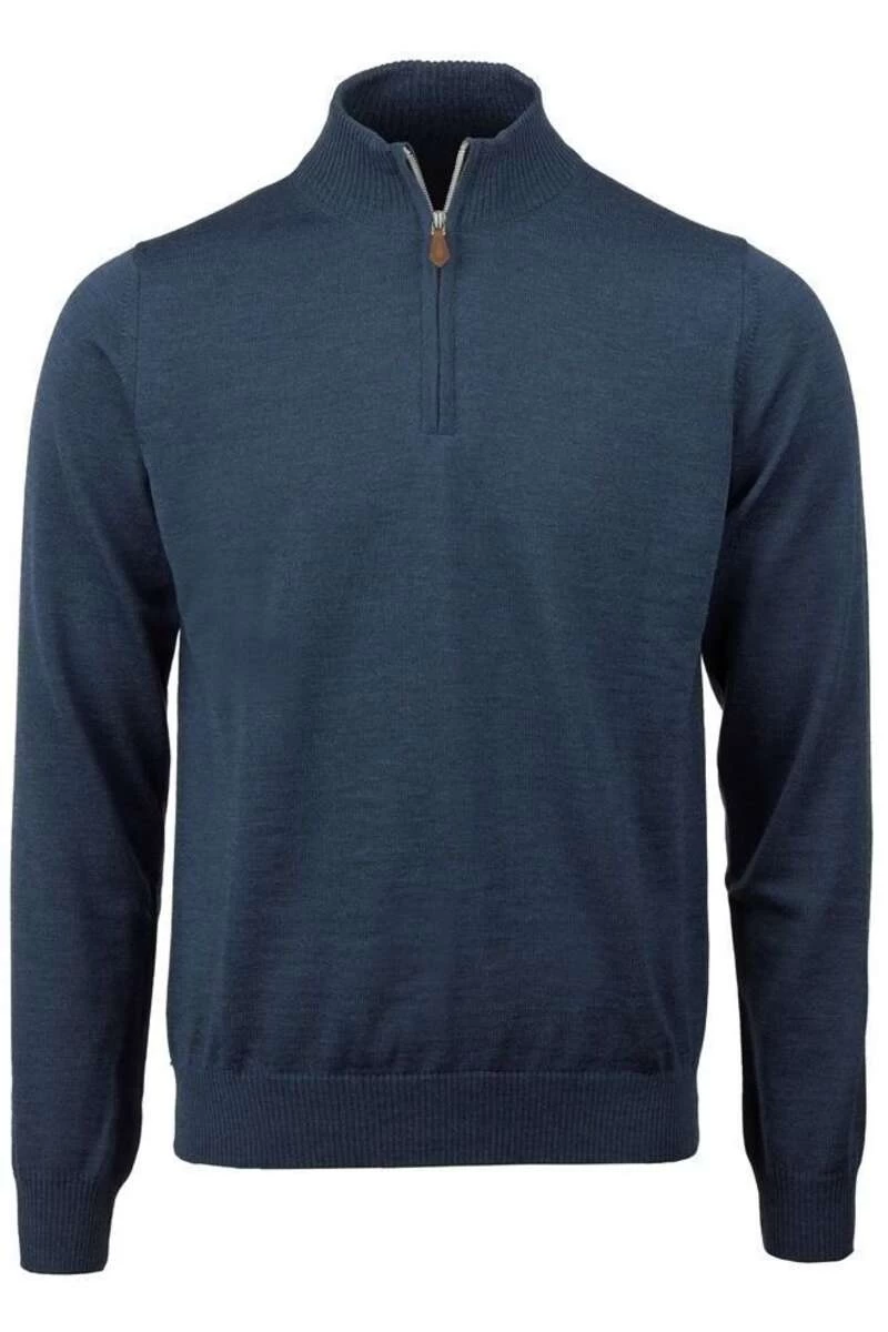 Der Herren Troyer in navy besticht durch seine perfekte Passform und seiner hervorragenden Qualität. Der Troyer ist aufgrund seines Materials sehr angenehm zu tragen. Der kurze Reißverschluss am Kragen ermöglicht es je nach Wetterlage den Troyer geschlossen oder offen zu tragen. Perfekt für die Übergangszeit!