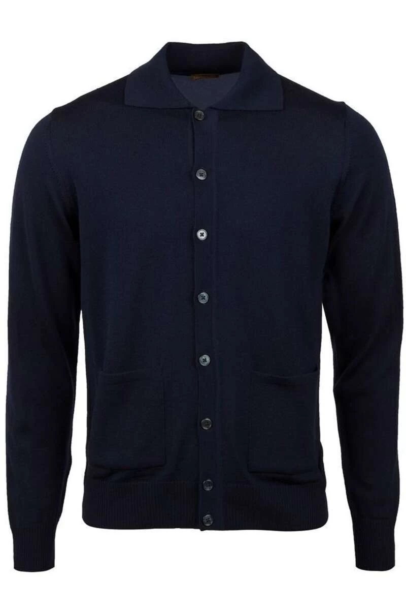 Stenströms Slimline Longsleeve Poloshirt Navy, Einfarbig