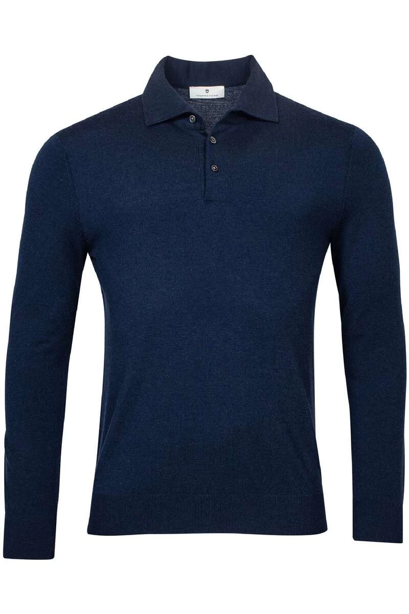 Thomas Maine Tailored Fit Longsleeve Poloshirt Blau, Einfarbig